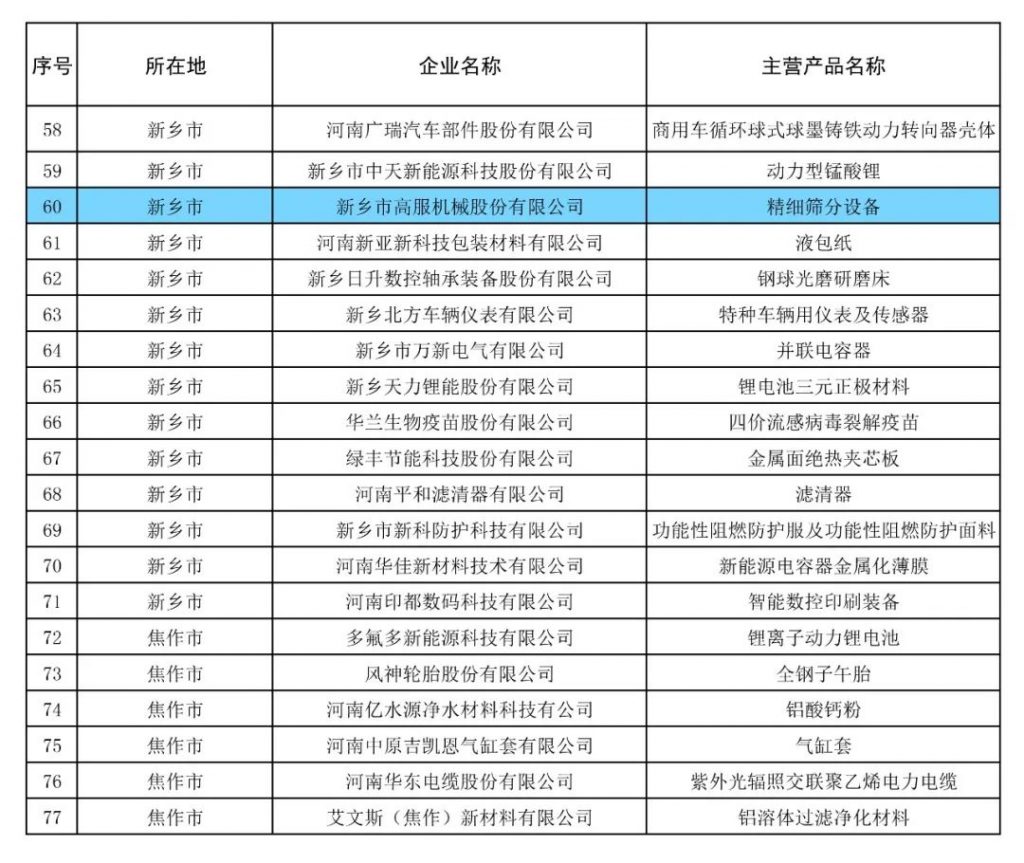 高服精細篩分設備榮獲“2024年河南省制造業單項冠軍企業”