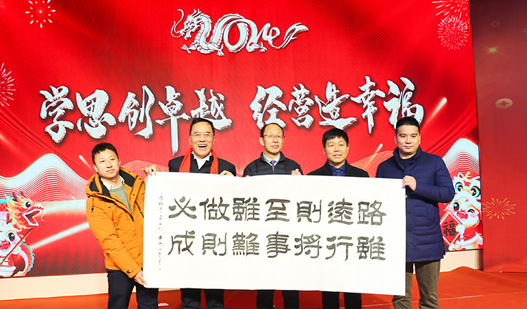 年會在一片熱烈的掌聲中拉開序幕,董事長賀占胥發表講話,發表了振奮人心的致辭。董事長首先對過去一年公司取得的成就表示肯定,他說:“過去的一年,是充滿挑戰與機遇并存的一年。面對市場的波動和行業的競爭,我們團結一心,勇往直前,終取得了令人矚目的成績。這些成績的取得,離不開每一位員工的辛勤付出和無私奉獻?!?br>2024,我們要堅持以高服經營智慧為導向,開展共識經營活動,樹立卓越觀和主人翁精神,用天天智慧規劃人生,用金三角機制,結果考核到人,加強學習組織建設,實行全員培訓,形成自主自發經營模式,讓每個人都成為經營者,讓每個人都成為專業冠軍!