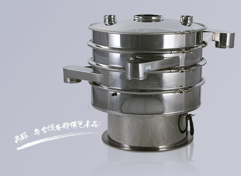 旋振篩由立式振動電機作激振器,振動電機上、下兩端安裝有偏心重錘,將振動電機的旋轉(zhuǎn)運動轉(zhuǎn)變?yōu)樗健⒋怪薄A斜的三次元運動,再把這個運動傳遞給篩面。調(diào)節(jié)上、下兩端的相位角,可以改變物料在篩面上的運動軌跡。
