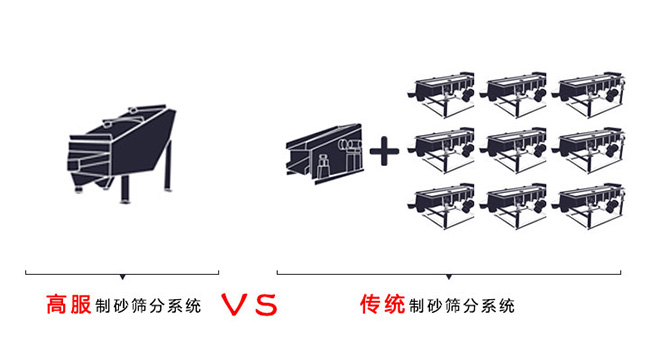 高服制砂篩分系統(tǒng)一臺GLS概率篩可分級多種規(guī)格,產(chǎn)量每小時可以達到50-250噸以上,投入成本低、占地少,概率篩可以安裝清網(wǎng)裝置,避免堵孔現(xiàn)象,傳統(tǒng)制砂篩分系統(tǒng)篩分孔徑小至5mm且多至3層,5mm以下需要加篩分設(shè)備,且產(chǎn)量低,增加成本和占地面積。 |