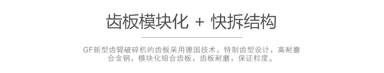 | ?篩、破一機投資小:兩齒輥相對轉動形成了旋轉的空間格篩。達到破碎、篩分的雙重功效,一機即完成破碎篩分作業。故無需配備篩分設備,簡化系統,減少投資。 | GF2PGX兩輥細破碎機結構簡單檢修少:手輪或液壓結構可快速調整出料粒度。設備模塊化構架,根據現場需要可分體異地安裝,也可組合安裝,便于起吊和檢修。標準化模塊組合齒板具有互換性,通用性,降低齒板的更換周期,降低運行成本。 | |