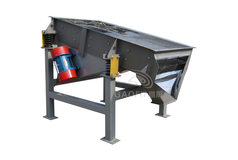 當縱向安裝在篩體上的兩臺振動電機做相對運轉時,兩臺振動電機兩端的偏心塊便產生額定激振力,其產生在橫向的激振力由于電機的相對運轉而相互抵消,其縱向激振力通過傳振體傳遞到整個篩箱上,而使篩面振動,從而使篩面上的物料受其激振力而在篩網面上向出料品方向跳躍運動,小于篩孔的物料通過篩孔而落到下層,經連續跳躍后從出料口流出,由于篩分過程合理,物料經振動篩分級后,可取得幾種不同粒度的物料,完成物料的分級作業。
